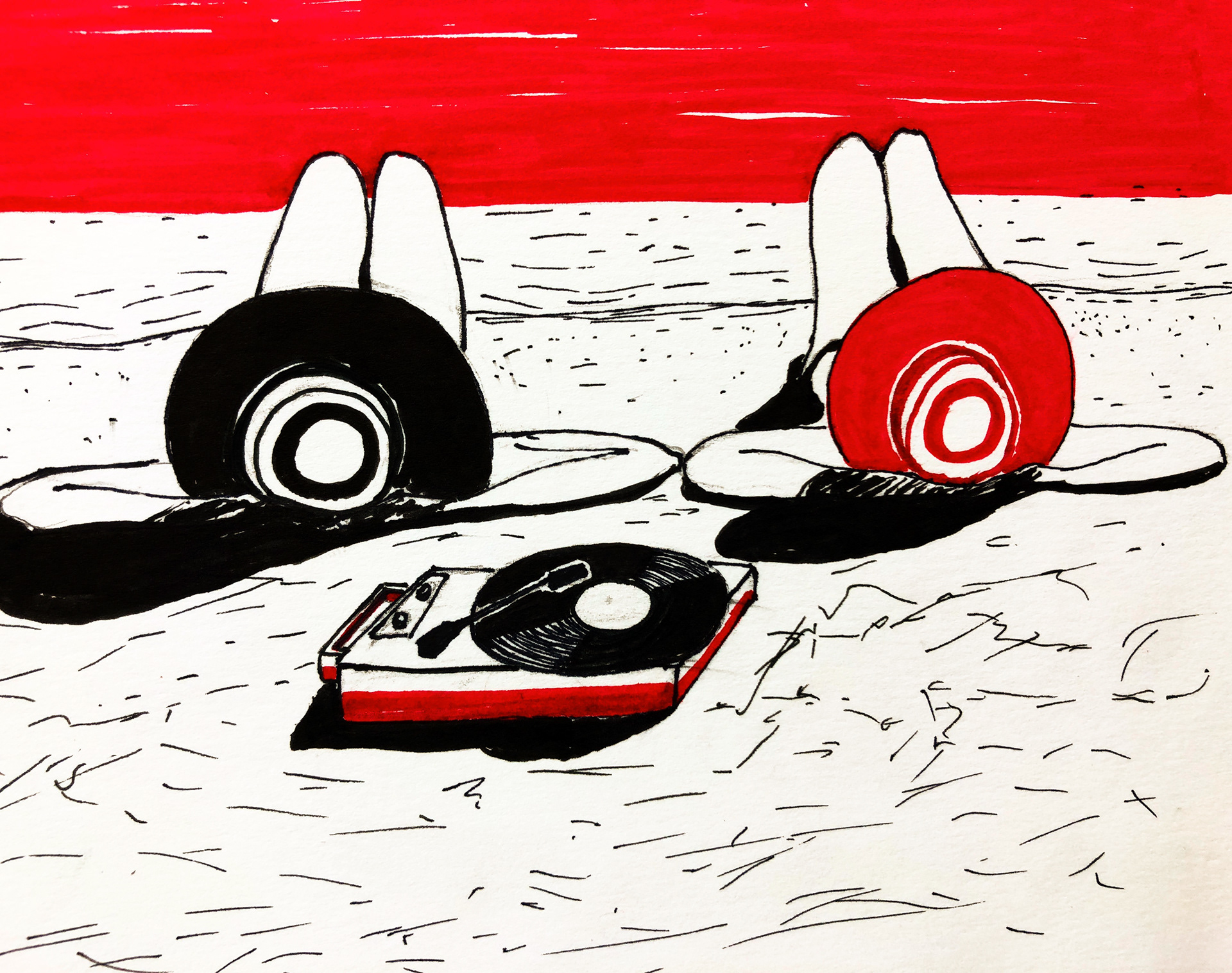 Karaoke, ink on paper, 100x148mm